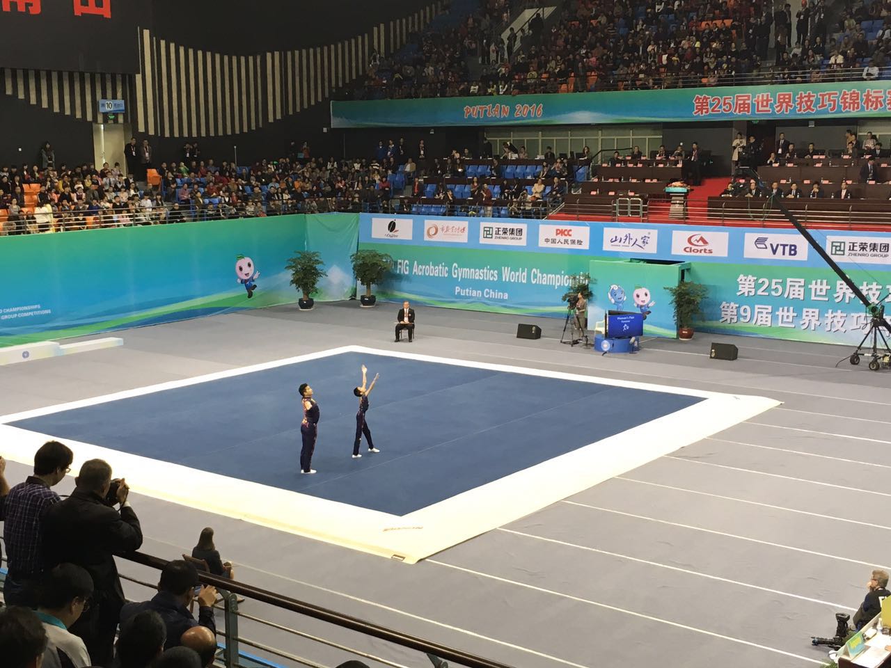 今日4月1號在體育中,舉行比賽莆田的第25屆世界技術(shù)錦標賽、 第9屆世界技巧年齡組比賽共有34個國家和地區(qū)近800人參賽。當各個代表團入場時,場館內(nèi)響起陣陣掌聲。這是莆田人民熱情的掌聲、歡迎的掌聲、喝彩的掌聲!