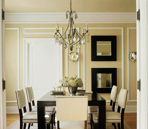 在餐廳一旁的墻面,通過將鏡子和邊框線的有效結(jié)合,呈現(xiàn)出獨(dú)特的變化感,通過狹長型的邊框處理,具有拉升墻面的的視覺效果。