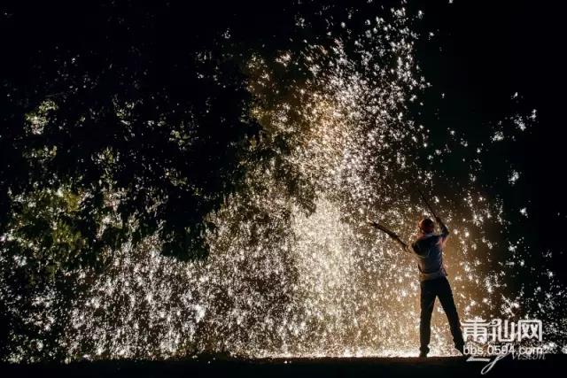 用特制的的竹片把鐵水打向大樹(荔枝樹、龍眼樹、榕樹等)上,高溫鐵水碰見低溫樹葉,發(fā)出砂砂的聲音在枝杈濃密的葉片間飛濺迸散,瞬間便在黑暗的夜空中呈現(xiàn)出鐵花四濺金光閃閃的絢爛畫面,產(chǎn)生“火樹金花”的效果,美輪美奐堪比煙,快來看看這震撼的畫面吧!