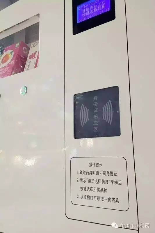 這種自助避孕藥具發(fā)放機(jī)高約1.6米,在紡織避孕藥具的窗口旁有一個(gè)小屏幕,屏幕下方是身份證讀卡區(qū)。只要市民用2代身份證貼近讀卡區(qū)進(jìn)行感應(yīng),2秒后就會(huì)提示領(lǐng)取計(jì)生藥具。